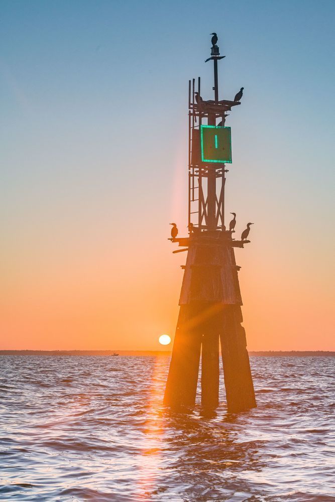 As the sun begins to illuminate the horizon, the buoy stands as a quiet witness to the dawn, bathed in the soft glow of the morning light. This solitary moment at Steinhatchee captures the beauty of solitude and the serene connection with nature that sunrise by the water can bring.
